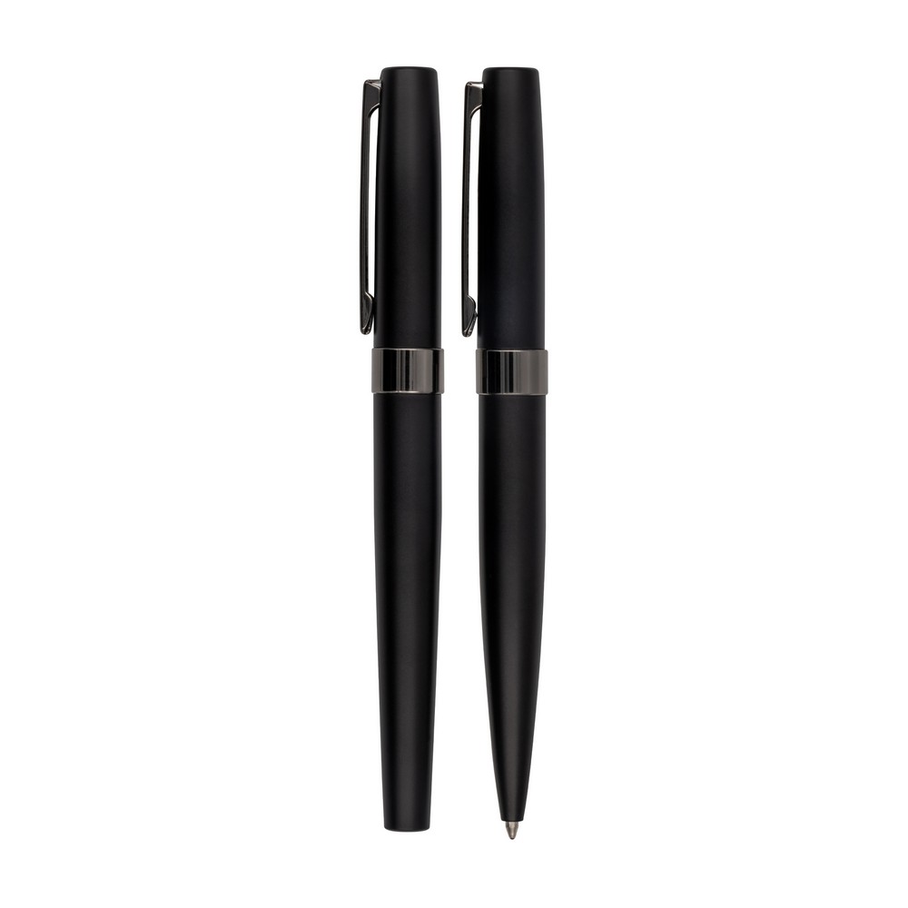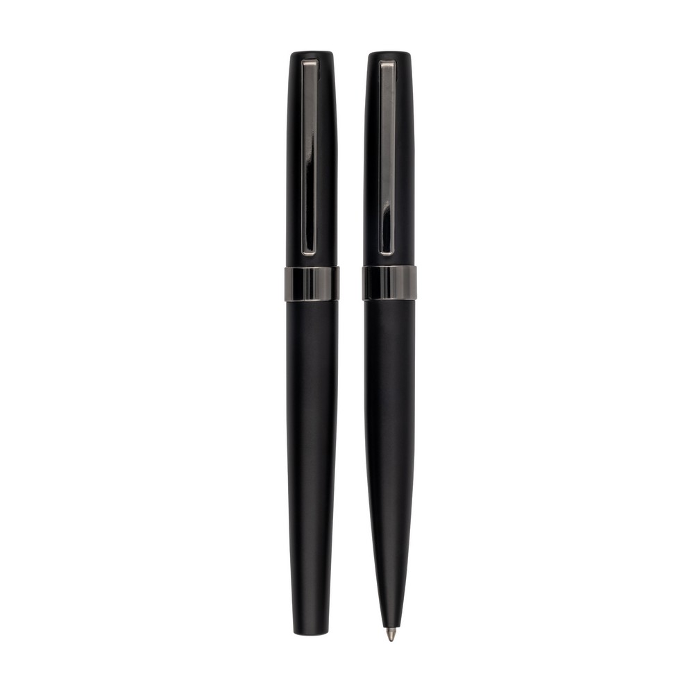 Das Schreibset „Evoxa“ ist die perfekte Wahl für stilvolles Schreiben. Das Set enthält einen Kugelschreiber und einen Rollerball mit schwarzem Gehäuse und glänzenden Verzierungen. Verpackt in einer eleganten Geschenkbox, ist dieses Set nicht nur praktisch, sondern auch ein echter Blickfang. Mit diesem Schreibset wird das Schreiben zu einem wahren Vergnügen.